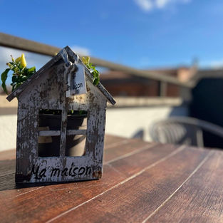 • La Terraza: A través de un amplio acceso acristalado, el salón conecta con una terraza que se convierte en una extensión vital de la vivienda. Con suelo de baldosa clara y una pequeña mesa de exterior, es el lugar ideal para el desayuno o el afterwork, con vistas a los tejados de la zona. Las plantas suculentas y ornamentales enfatizan la conexión con el exterior.